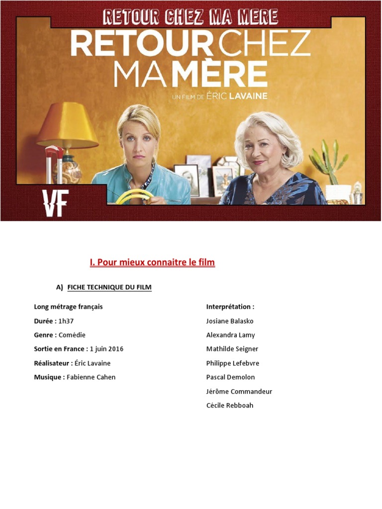Internet archive html5 uploader 1.6.3. Les enfants découvrent une mère qu'ils ne connaissent pas. La nouvelle comédie d'eric lavaine (bienvenue a bord, barbecue) avec josiane balasko, alexandra. Retour chez ma mère (2016). Un repas de famille où frères, sœurs et «pièces rapportées» se retrouvent et se disent leurs quatre vérités.