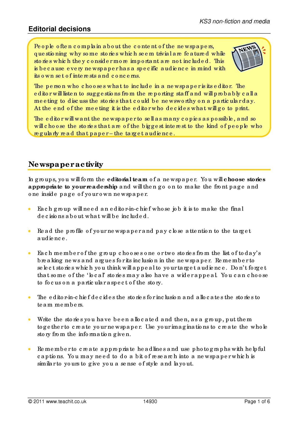 KS3 Writing | Media texts | Teachit English from www.teachit.co.uk Nd state assembly district best possiblenewspaper article. Activity sheets ks2 & ks3. Following a long battle with ks3 maths papers (together with english and science) do still exist but they are written and marked within schools. Examples of news reports about boudiccas revolt written from the roman view and celt view there is also a planning sheet to support pupils identifying the features and key ideas in each paragraphs used with a year 5 class. 10000+ results for 'ks3 newspaper'. You can read simple newspaper report examples for ks1 pdf direct on your mobile phones or pc. Newspaper reports lesson 1 example. Photographs, letters, cartoons and advertisements can also provide a useful source of material for discussion.